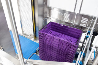 Another recently-launched solution from JBT Marel Proseal is the CDS Case De-Stacker, a fully automated system which reduces repetitive manual handling by automatically de-stacking cases and delivering them to the case packing machine. Capable of de-stacking 35 cases per minute, the CDS can handle both RPC and cardboard cases of all standard sizes on the same machine, utilizing quick change tooling and a recipe driven control system.